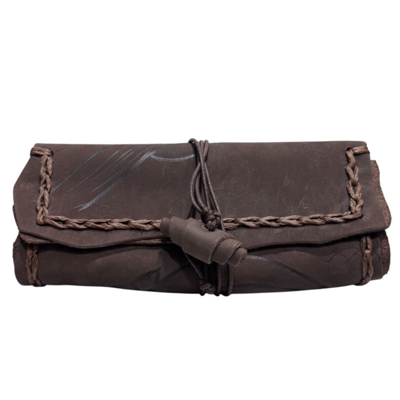 Original MR Drehert. Leder dunkelbr. ant.Pyrografie"Gitarre"