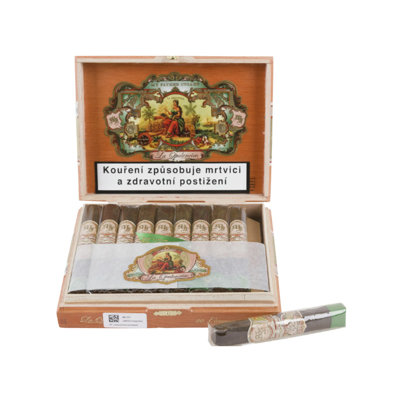 My Father La Opulencia Corona - prvním přivonění je cítit hořká čokoláda a stará kůže. Postupně se při kouření přidávají nasládlé tóny kakaa a skořice se štiplavými poznámkami pepře či orientálního koření. Hoření je perfektní a bezproblémové.